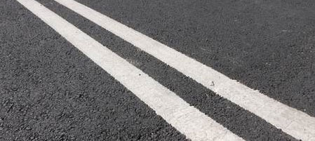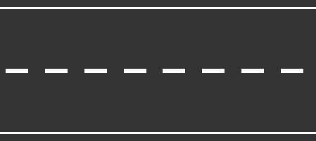 Una doble línea sólida blanca marca el borde del carril, cuando está permitido