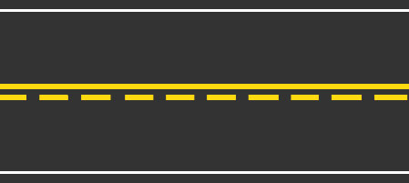 Ante una sola línea amarilla discontinua separando dos carriles de tránsito que se mueven en