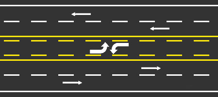 Los conductores de cualquiera de las dos direcciones pueden usar el carril central para
